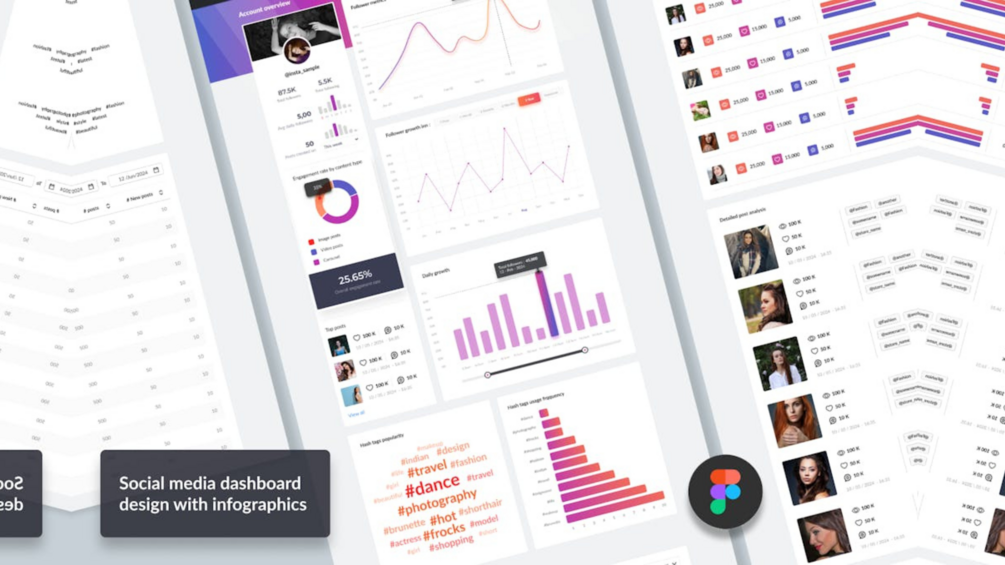 Dashoboard, Socialmedia, Social, Media, Infographic, Chart, Graph, Ui, Kit, Ux, Analytics, Stat, Analysis, Information, Instagram